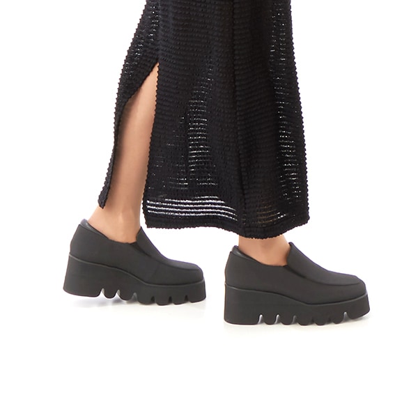 ウェーブを描くようにデザインされたウェッジーソールが印象的なコンフォートシューズ。