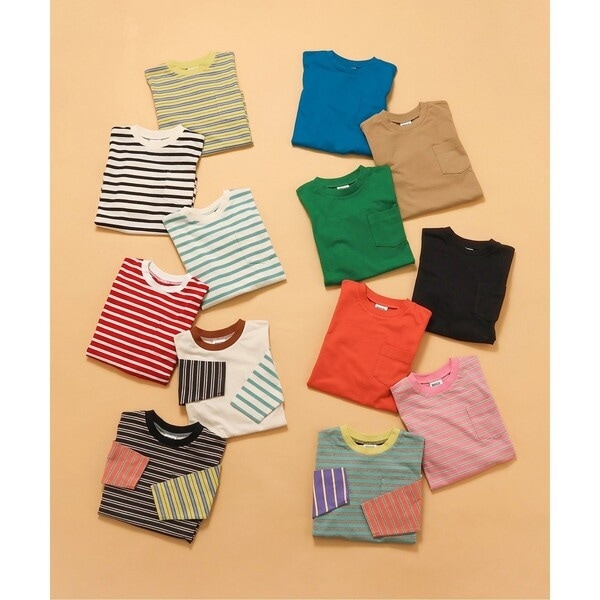 WEB限定 無地ボーダー長袖Tシャツ_ジュニア対応