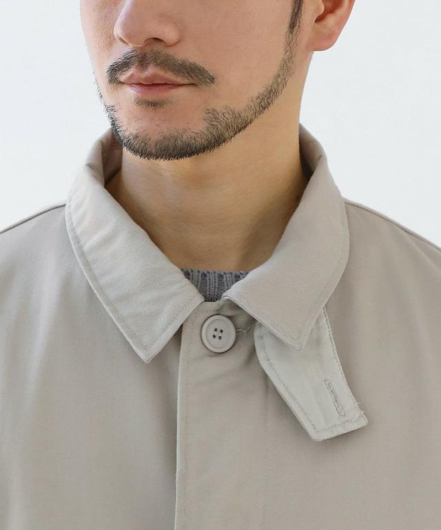 キレイめコーデの定番アウター『ステンカラーコート』を都会的にブラッシュアップした使い勝手の良いコートです。綿混のナチュラルな風合いの生地で、堅苦しさのない一着に仕上げました。襟は、着こなし方が広がる比翼仕立ての2way仕様。キレイなAラインシルエットや、膝が隠れる程よい丈感も上品な印象を醸します。出がけにさっと羽織るだけで、いつものコーディネートがかっこよくまとまる大人のマストバイアウターです。