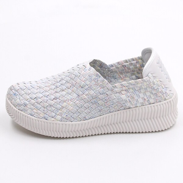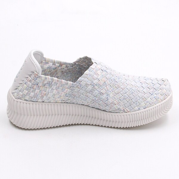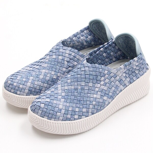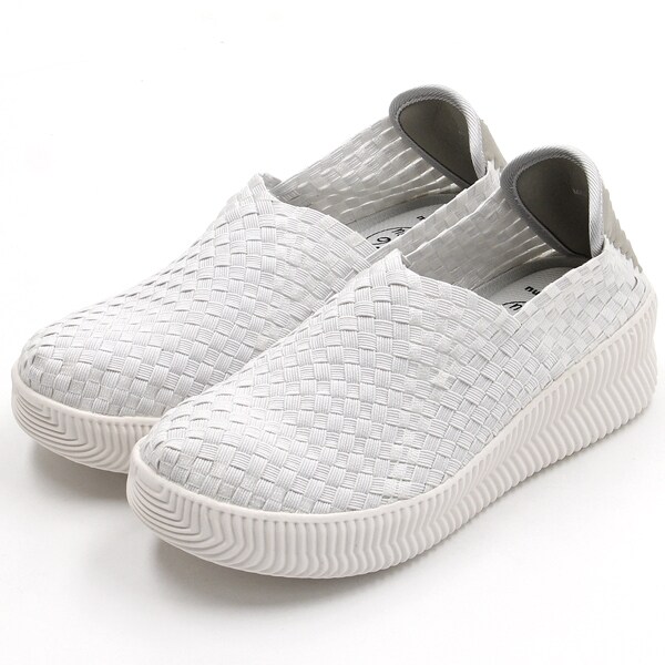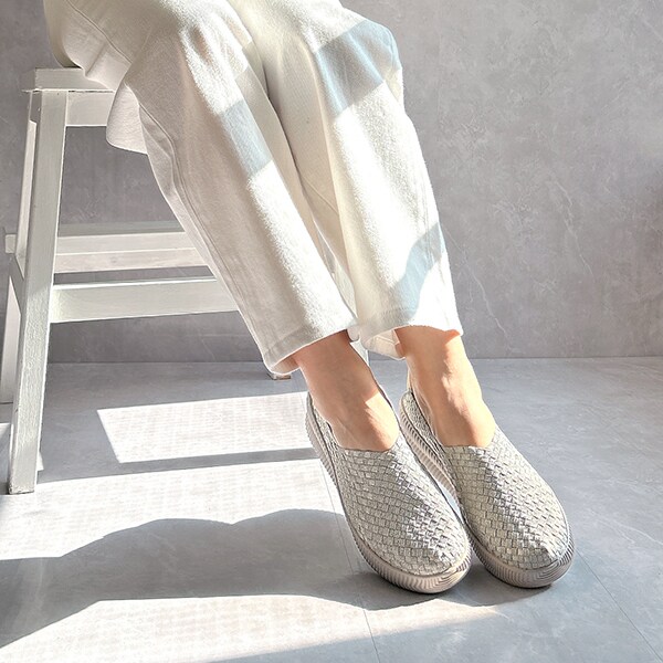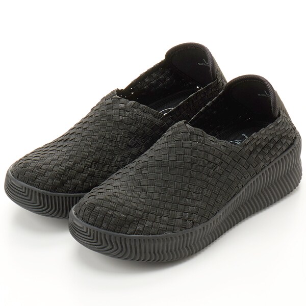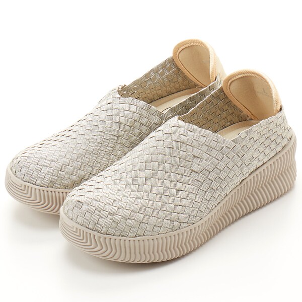 ゴム素材とポリエステルのテープをメッシュ状に編み込み、伸縮性を持たせた足にフィットする仕上がり。