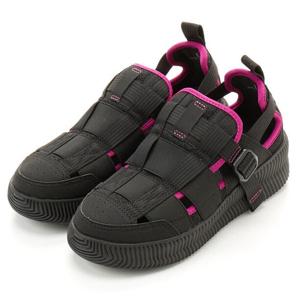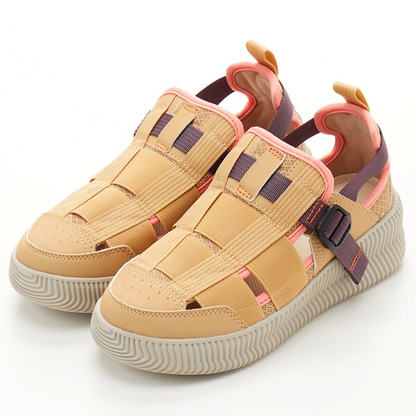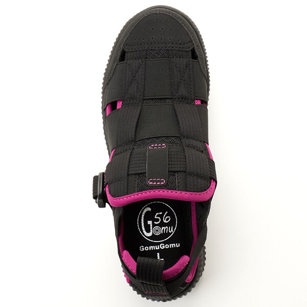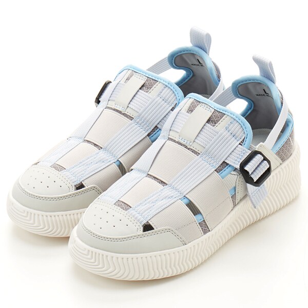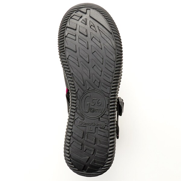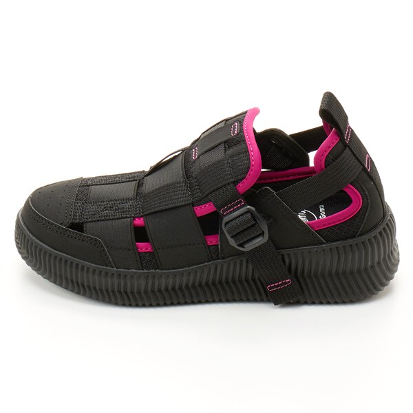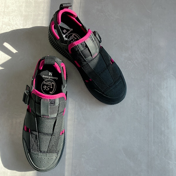 アッパーにはゴムが施されているので、伸縮して足にぴったりとフィットし、足の幅・甲の高さにあわせてベルトで簡単にサイズ調整できるのが嬉しいポイント!
