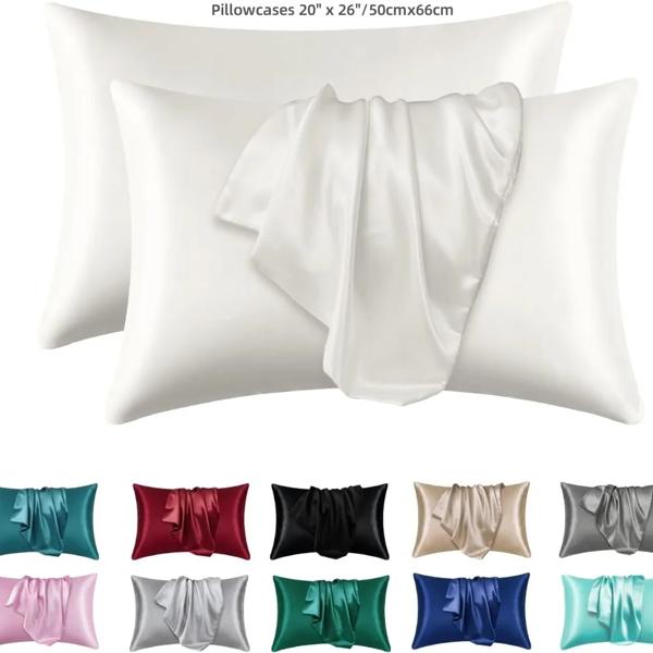 肌と髪のためのポリエステル枕カバー、サテンの枕カバー、柔らかく通気性、滑らかで冷却、睡眠用の枕カバー、2個