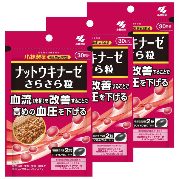届出表示:本品には納豆菌由来ナットウキナーゼが含まれます。納豆菌由来ナットウキナーゼは、血流(末梢)を改善することで血圧が高めの方の血圧を下げる機能が報告されています。血圧が高めの方に適した食品です