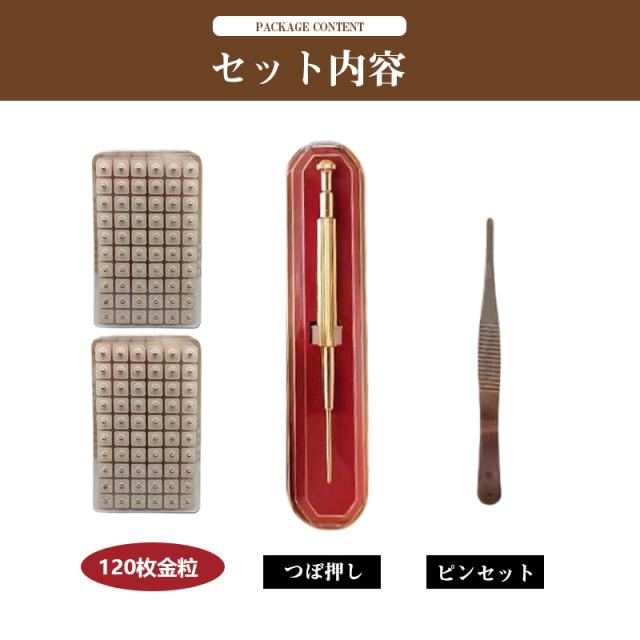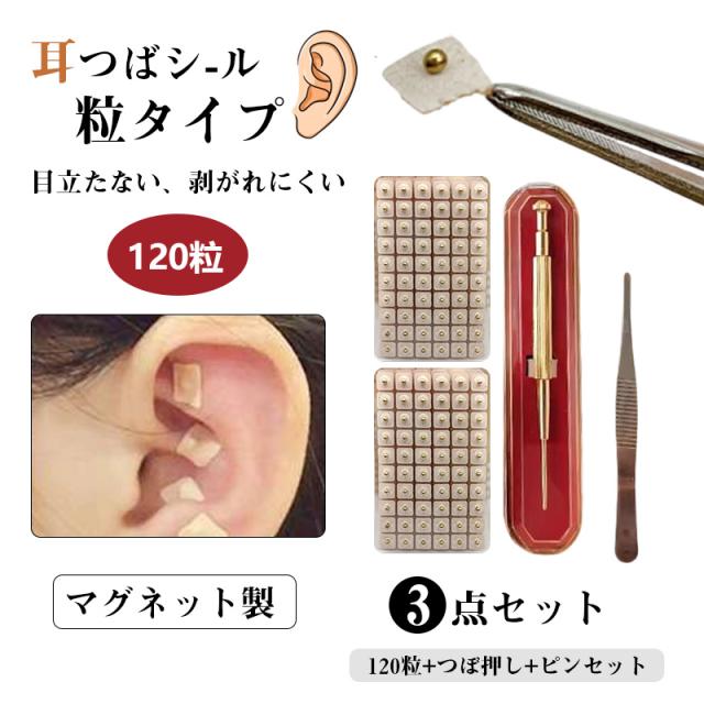 耳つぼ スターターキット 120枚 耳つぼシール つぼ押し 耳ツボ お試し マグネット 金粒 ピンセット 3点セット 肌色
