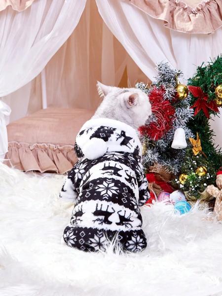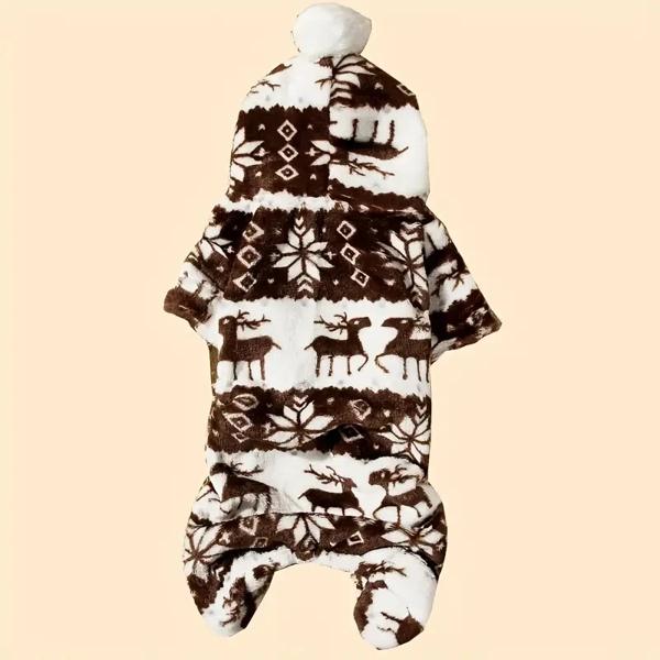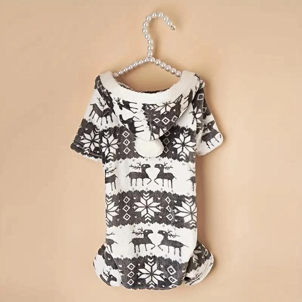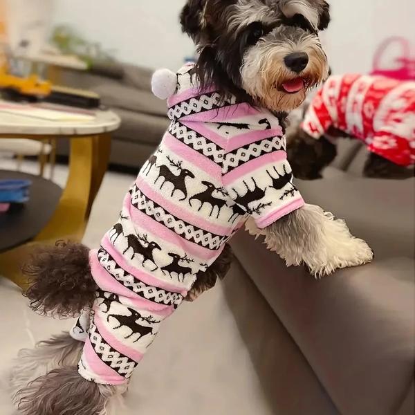 クリスマストナカイグラフィックパジャマ、ペット用フード付きジャンプスーツ、子犬のおもちゃ、小型犬、1個