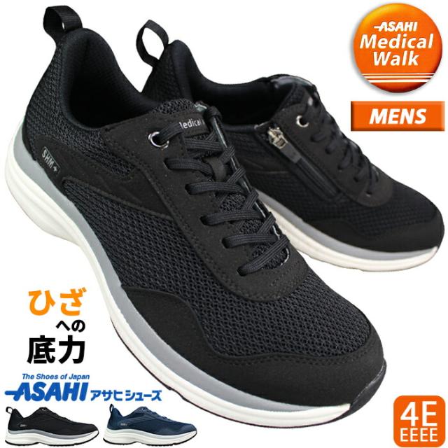 メディカルウォーク WK M032 ブラック ネイビー 25cm〜27cm 4E ゆったり 幅広 ファスナー付き ASAHI アサヒシューズ
