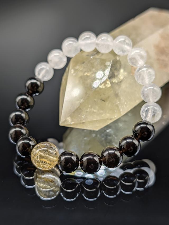 パワーストーン モリオン ヒマラヤ水晶 ゴールドルチルクォーツ 8mm 親玉10mm 高品質 ブレスレット 黒水晶 金針水晶 開運 天然石 金運 縁切り メンズ レディース