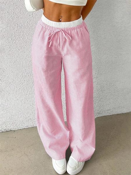 女性用ワイドレッグストライプパンツ,カジュアル,エレガント,ロング,y2k,秋冬,ストリートウェア,織り,2024