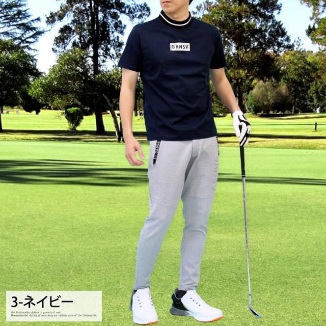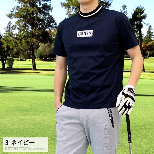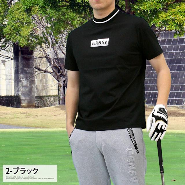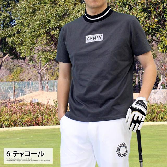 M~3XL 新作 機能性 ゴルフウェア モックネックシャツ メンズ GIORNO SEVEN ジョルノセブン ハイネック ゴルフ 接触冷感 ストレッチ 半袖 シルバーロゴ 首ライントップス ポロシャツ Tシャツ 春夏 送料無料 ゆうパケ