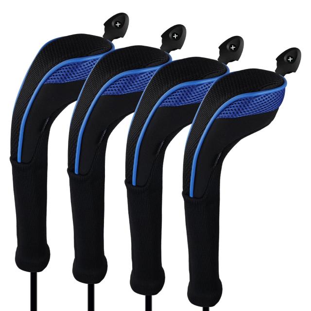 Andux ロングネック ゴルフ ハイブリッド クラブヘッドカバー 交換可能な番号タグ付き 4個セット (ブルー)