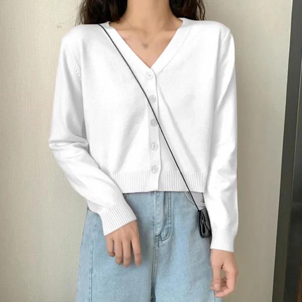女性用長袖ショートカーディガン,Vネック,ボタンダウン,ニット,シングルブレスト,レディースセーター,秋,春