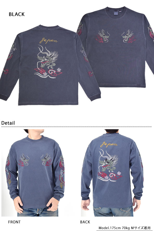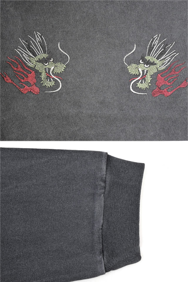 日本で初めてオリジナルのフライトジャケットを生み出し、その後も数々の国内製ミリタリー商品を製造する「ヒューストン」から、ピグメントUSコットン長袖Tシャツ「DRAGON」(22274)のご紹介です。 ボディーに7.6オンスのUSコットン生地を使用した長袖Tシャツが登場しました。 古着のようなヴィンテージ感を醸し出すピグメント加工が施されています。 デザインには、スカジャンをサンプリングした龍柄を採用。 袖口にはリブを縫い付け、野暮ったさを軽減しました。 | |||||||||||||||||||||||||