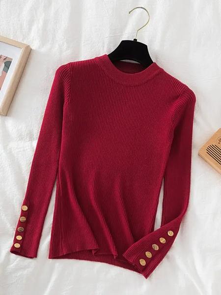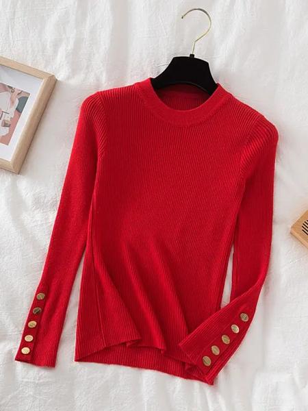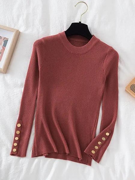 女性のカジュアルなラウンドネックセーター,シックなセーター,スリムニットトップ,ソフトジャンプスーツ,ボタン,秋冬,2024コレクション