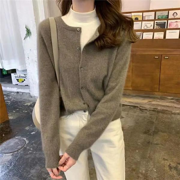 カシミアニットカーディガン,レディースセーター,シングルブレスト,長袖,エレガント,ヴィンテージ,無地,秋冬アウターx452