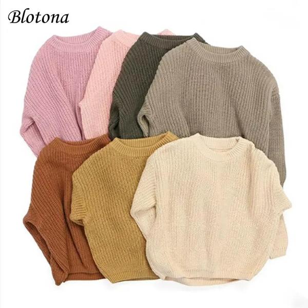赤ちゃんの女の子と男の子のための長袖ニットセーター,新しい秋冬コレクション,無地,ルーズフィット,カジュアルなトップス,3ヶ月から5歳までの子供服