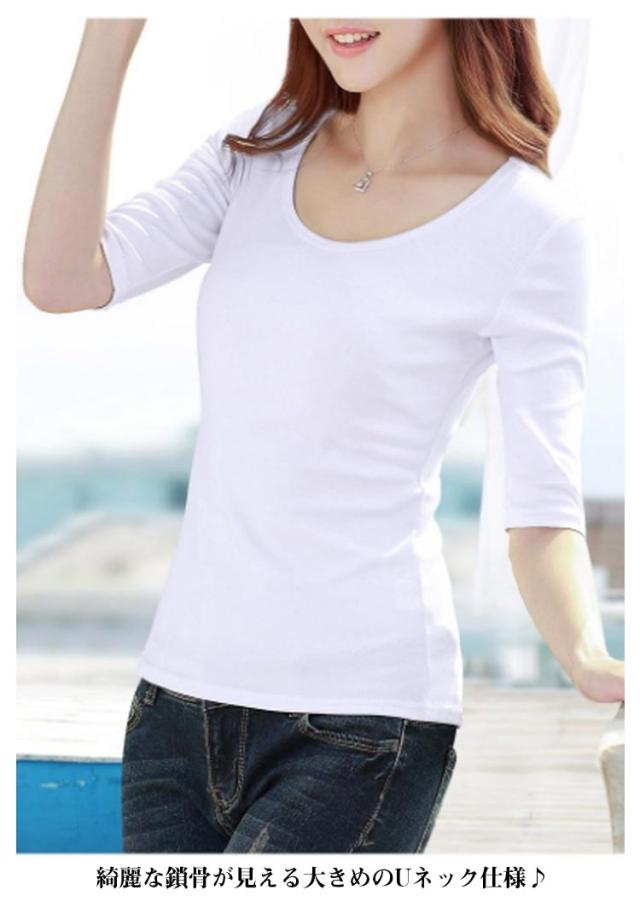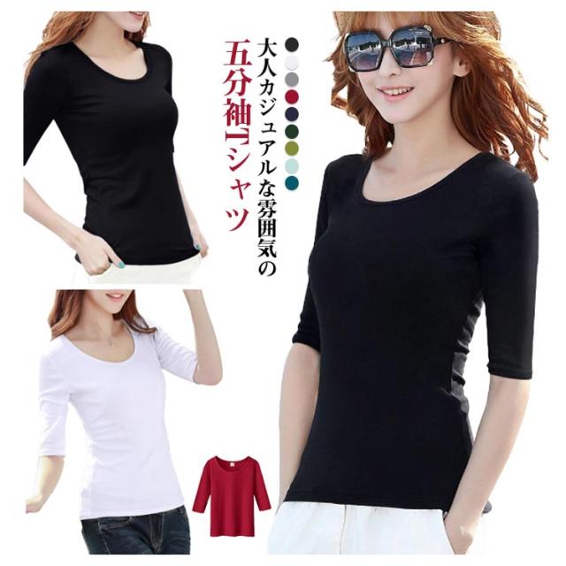 五分袖tシャツ インナー カットソー クルーネック tシャツ 無地 トップス レディース 春 夏 薄手 tシャツ ロンt ティーシャツ プルオーバー Uネック 柔らかい トップス 5分袖 重ね着用 下着 肌着 肌に優しい 送料無料 全9色展開