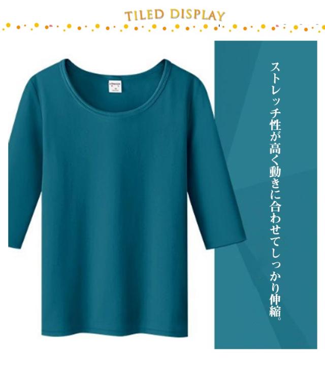 | 大人カジュアルな雰囲気の五分袖Tシャツ。 綺麗な鎖骨が見える大きめのUネック仕様♪ ストレッチ性が高く動きに合わせてしっかり伸縮。 豊富なサイズ展開で小柄さん・大柄さんでもあんしん! 春夏のトップスとしてはもちろん、インナーに着てレイヤードスタイルも楽しめ。 | |