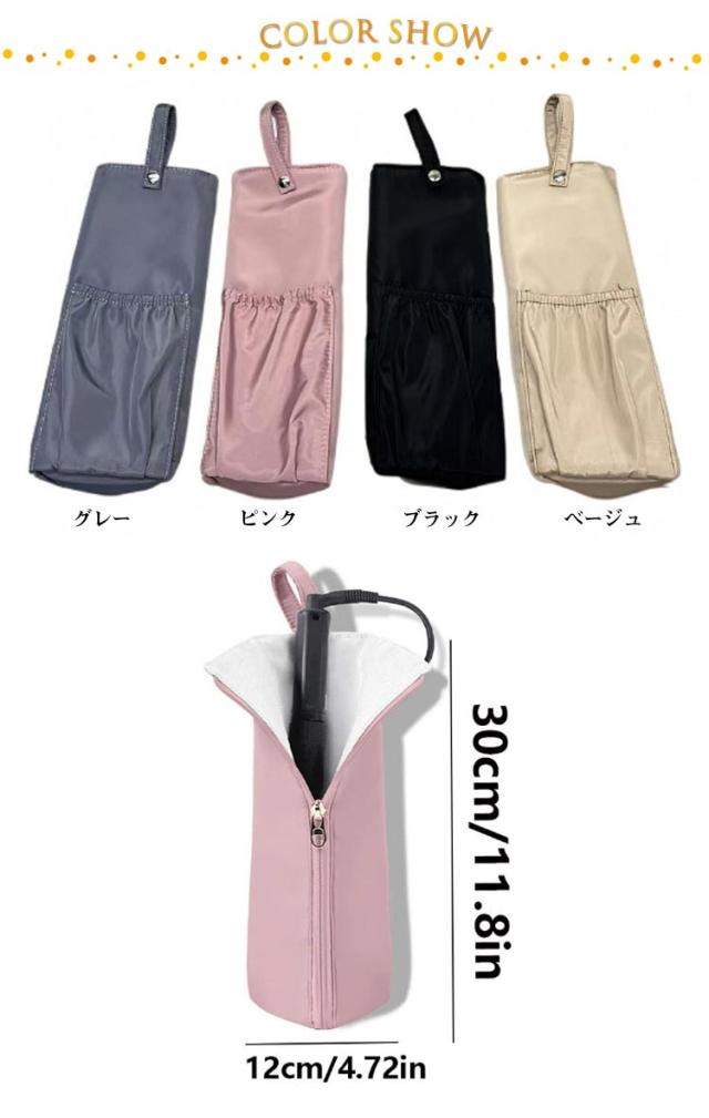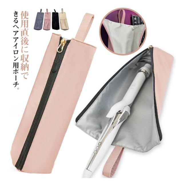 ヘアアイロンケース ポーチ 吊り下げ 耐熱 旅行 カバー ヘアアイロン収納 ポーチ ヘアアイロンホルダー ヘアアイロンカバー アイロンケース ストレートアイロン トラベルポーチ 便利グッズ 吊り下げ かわいい 送料無料 ブラック グレー ベージュ ピンク