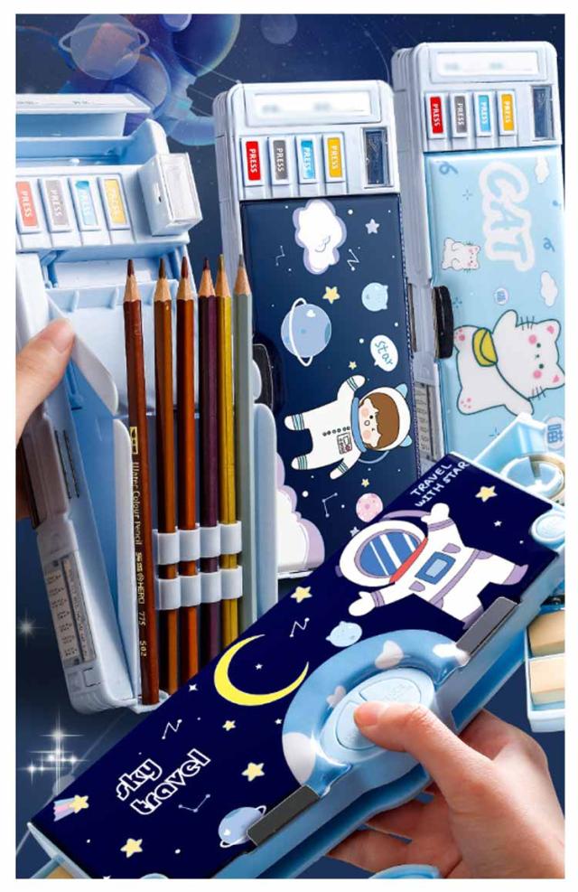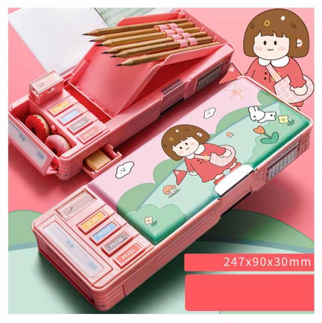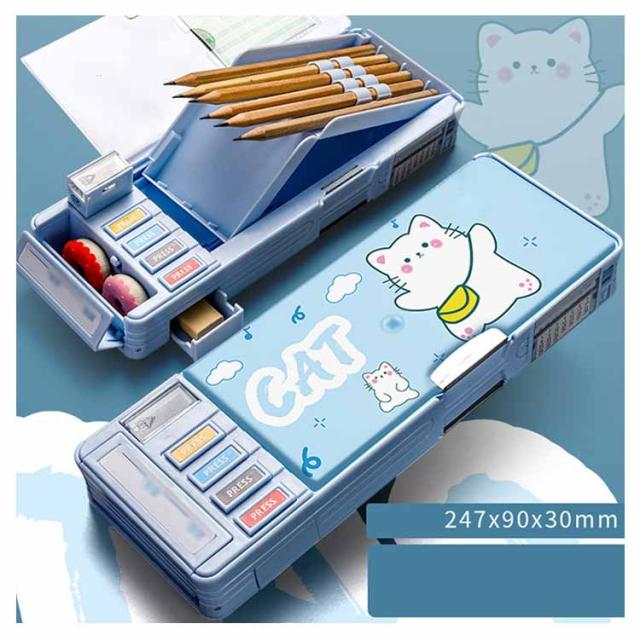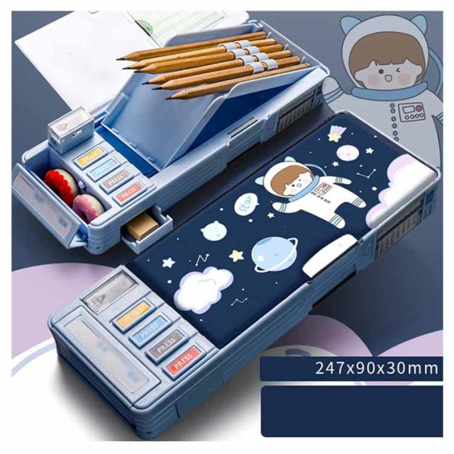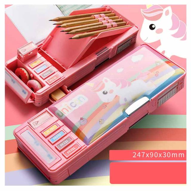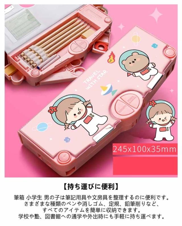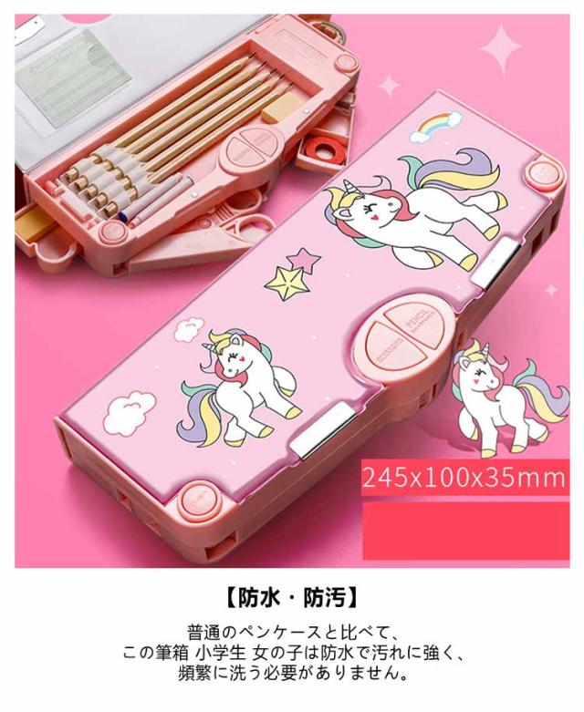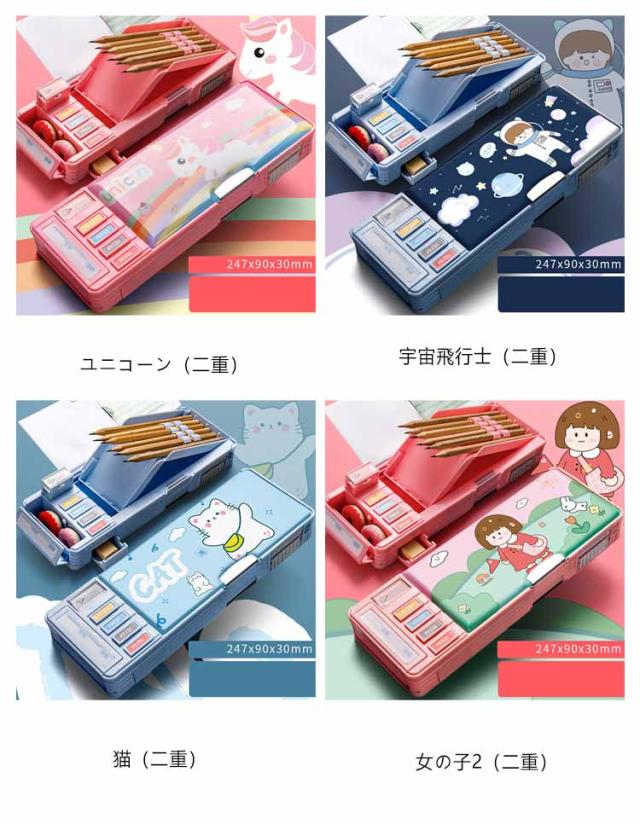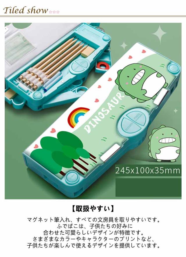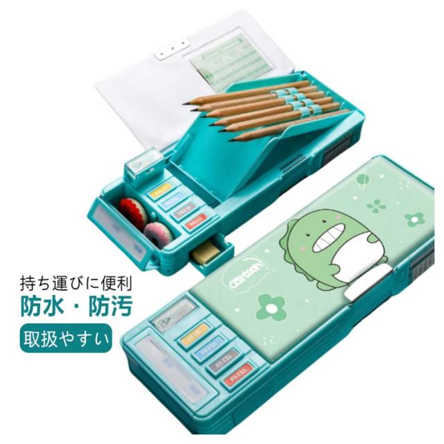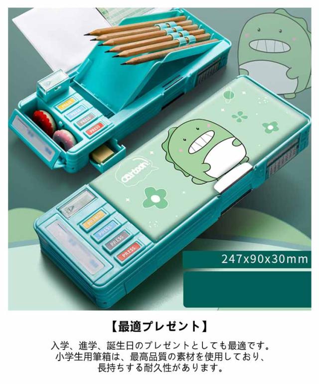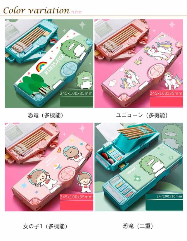 2タイプ選べる 片面 両面 筆箱 小学生 ペンケース 筆箱 箱型 多機能筆箱 鉛筆削り付き ハサミ 消しゴム テープカッター ペンホルダー 筆入れ 時間割表 小物入れ 大容量 多機能 軽量 耐久性 多機能 カトゥーン柄 恐竜柄 ユニコーン柄