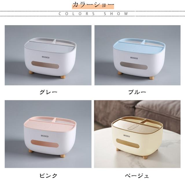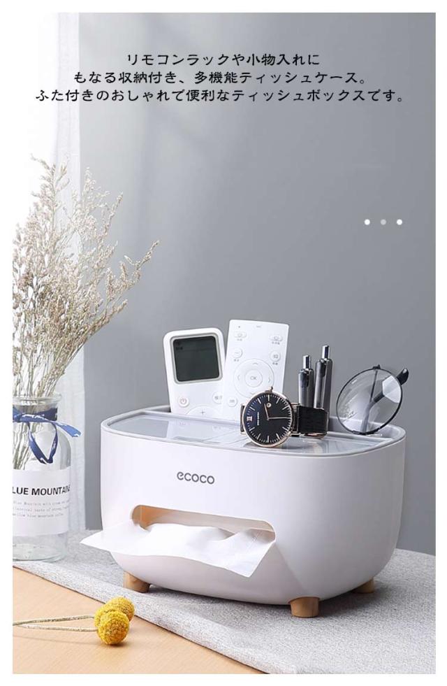| おしゃれでかわいい 収納付き多機能ティッシュケース テーブル周りの小物が収納できてすっきり片付く、 リモコンが収納できるティッシュケース リモコンラックや小物入れにもなる収納付き、多機能ティッシュケース。 ふた付きのおしゃれで便利なティッシュボックスです。 ●シンプルかつ素朴なカラーで どこに置いてもなじみます ・デスク デスク周りの差し色としても スルーはピッタリ! ・ドレッサー 化粧台に置けば 化粧道具を置くのにピッタリ ・寝室 ベッドサイドに置けば スマホスタンドにも◎ ●便利な収納付 ティッシュの取り出しラクラク ●内蔵されたハンドルは スマホスタンドとしても使用可! ●落下耐性 しっかりした作りで 丈夫で長持ち! ●滑り止め付 底の部分には滑り止めがついています。 テーブルに傷がつくのも防ぎます。 【使用方法】 1.凹み部を押すとハンドルが出てきます。 2.ハンドルを引っぱり、カバーをオープン 3.ティッシュを入れて、カバーを閉じればOK 4.ティッシュ後部はペンやリモコン入れに◎ | |