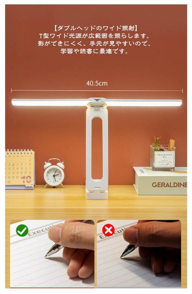デスクライト 折りたたみ LED ダブルライト コードレス 折りたたみ式 USB 充電式 4000mah 持ち運び おしゃれ 折りたたみライト LEDライト 学習机 スタンドライト コンパクト 目に優しい 明るい 影ができにくい 明るさ調整 調光 調色 子供 勉強 白