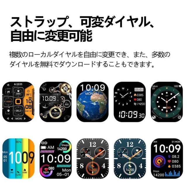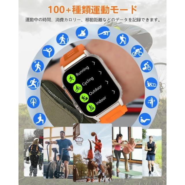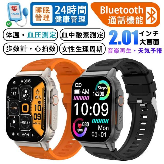 スマートウォッチ 通話機能 血圧測定 体温 血中酸素 電話通知 MET機能 睡眠管理 心拍数 着信通知 運動モード 懐中電灯 音楽制御 天気 電卓 メッセージ通知