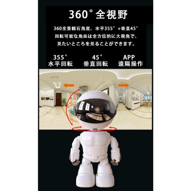 防犯カメラ ロボット型 監視カメラ 200万画素 ネットワークカメラ 無線 ワイヤレス 見守りカメラ 屋内カメラ 自動追跡 録画機能付き 置き型 スマホ 留守番