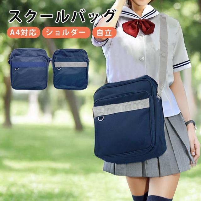 スクールバッグ ショルダー サブバッグ 高校生 女子高生 かわいい 中学生 女子 韓国 スクバ 学生カバン 通学カバン ショルダーバッグ スクール 大容量 スクエア 肩掛け 通学バッグ 斜めがけバッグ 布 ネイビー グレー 男子