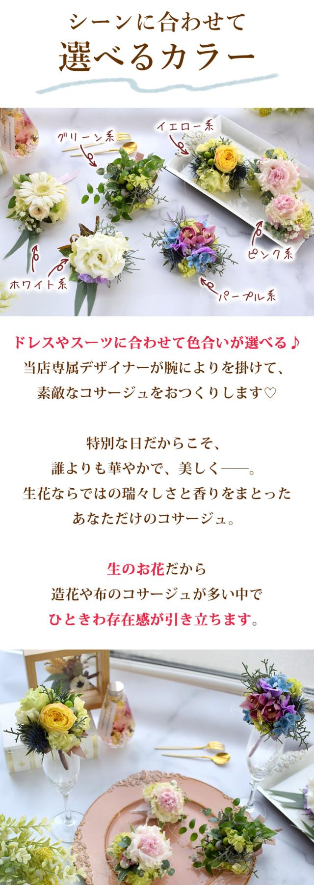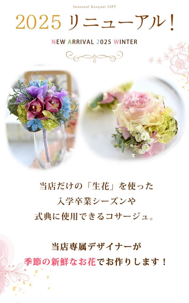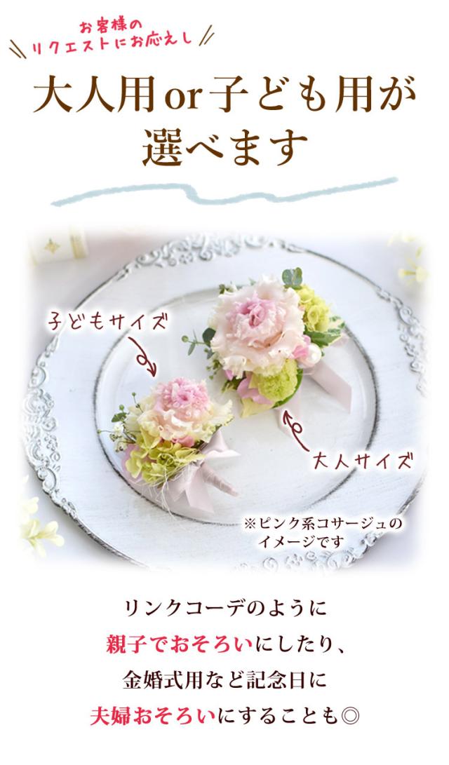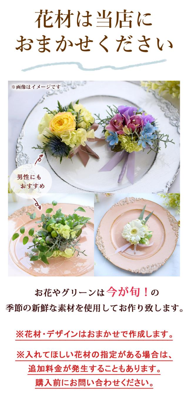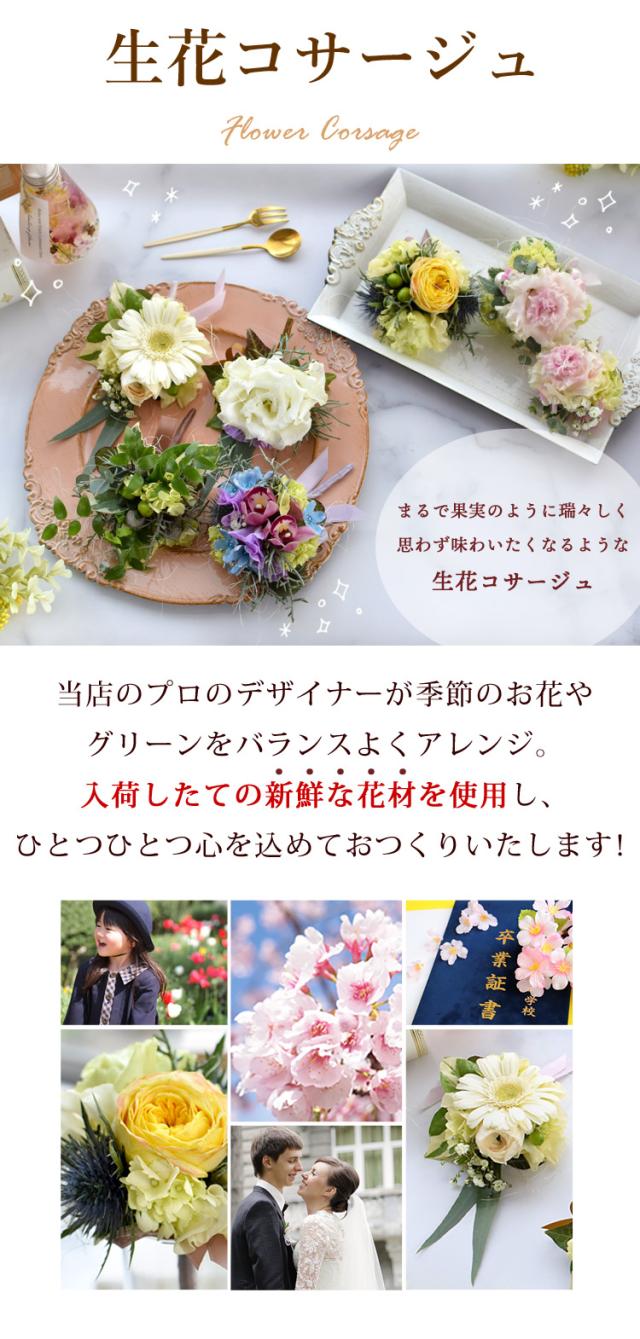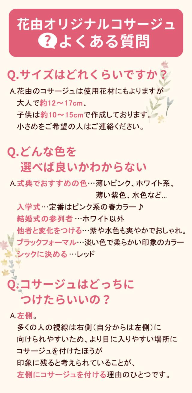 ![]() 生花コサージュ 大人用 /5,490円(税込・送料無料) | ![]() 生花コサージュ 子ども用 /3,990円(税込・送料無料) |