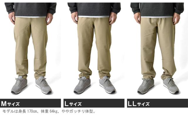 ![]() | Mサイズを着用しました。ウエストや太もも周りに適度なゆとりがあり、ストレッチ性に優れているため動きやすく感じました。テーパードシルエットのおかげで脚がすっきりと見え、カジュアルながらも上品な印象を与えてくれます。特に快適なのは、裏地の凸凹構造により汗をかいても肌に張り付かず、サラサラとした感触が続く点です。軽量で通気性が良く、暑い日でもムレにくいため、夏場の普段使いやオフィスカジュアルとしても最適な一本です。 |
