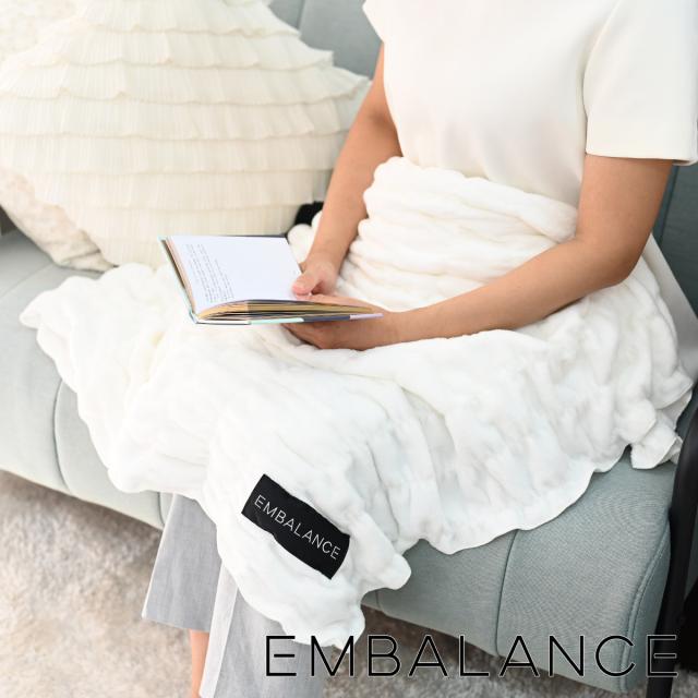 EMBALANCE ブランケット 140×100cm シュリンク織 日本製 ( エンバランス 膝掛 肩掛け シンプル 洗濯機OK 洗濯可 ホワイト 無地 くしゅくしゅ おしゃれ )