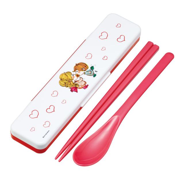 コンビセット 抗菌コンビセット 水森亜土 ( 食洗機対応 18センチ お箸 音の鳴らない カトラリー 抗菌 日本製 食洗機OK カトラリーセット 銀 AG 持ち運び お弁当 弁当 抗菌加工 箸箱 )