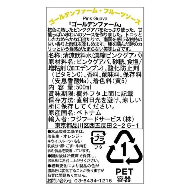 ベトナム産 Golden Farm ゴールデンファーム フルーツソース ピンクグアバ 500ml ×24本セット