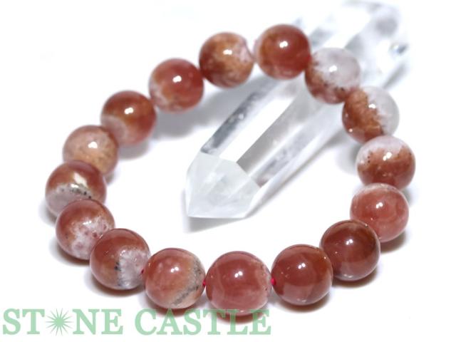 ☆一点物☆【ブレスレット】ペルー産インカローズ&水晶パイライト共生鉱 No.03 (約13〜13.5mm) (ケース付) 天然石 パワーストーン