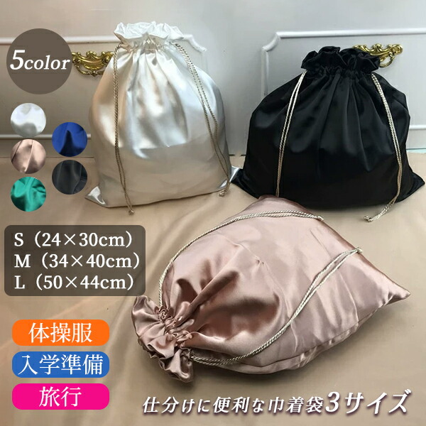短納期】高級巾着 コットン 巾着袋 大 無地 光沢 収納バッグ プレゼント包装 収納袋 きんちゃく インナーバッグ バッグインバッグ シンプル バッグ 整理 横型 かばん ギフト ピンク ブラック ホワイト グリーン ブルー ja561c0c0m5