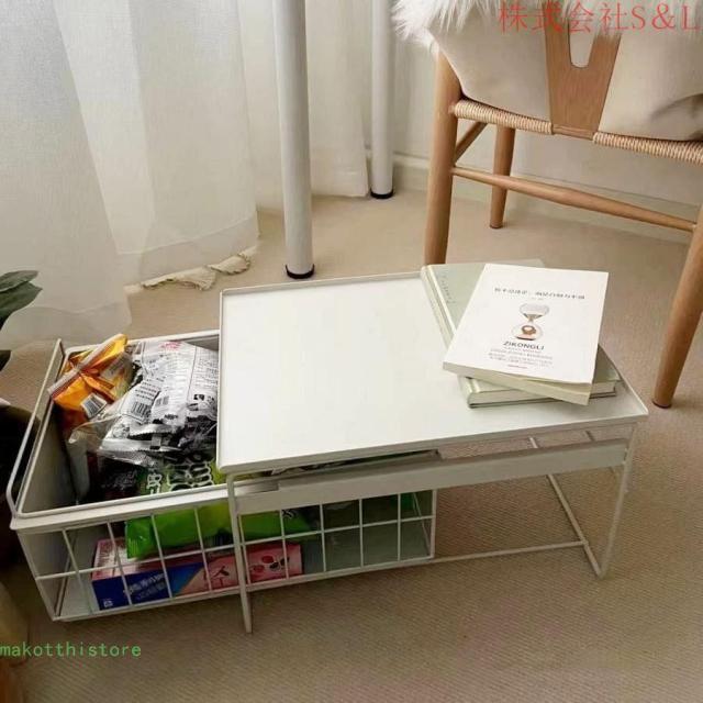 ローテーブルおしゃれ 収納 テーブル リビング ソファ テーブル サイドテーブル コンパクト収納 スチールフレーム リビング用テーブル 組み立て簡単 省スペース