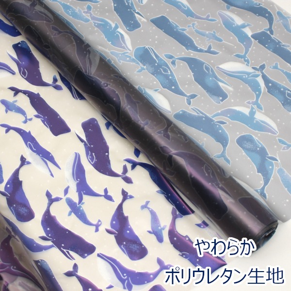 【10cm単位価格】 やわらかウレタンプリント くじら TPU(熱可塑性ポリウレタン)100% 防水 撥水 生地 布 約65cm幅 150-1662-A ゆうパケット3m対応 ( ハンドメイド 手作り ポーチ サコッシュ カバー インテリア バッグ 手芸 雑貨小物 )