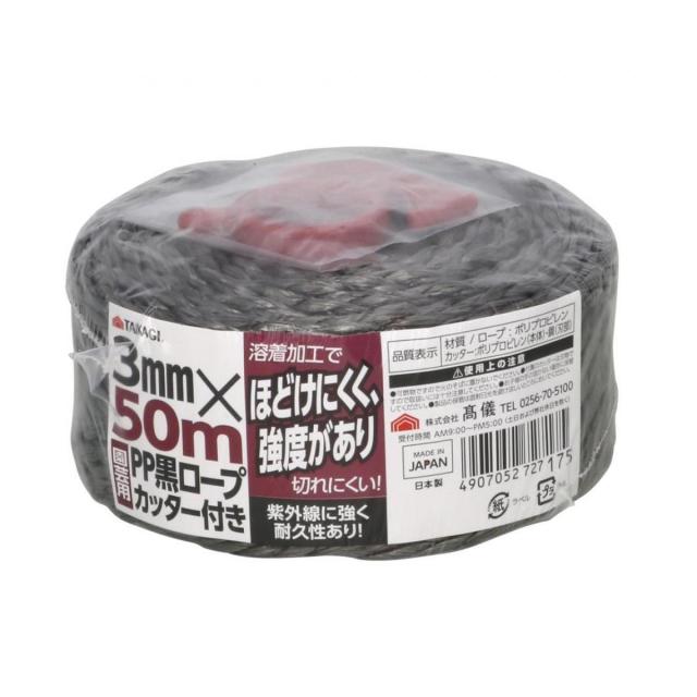 高儀 takagi 園芸用黒PPロープ カッター付 園芸用品 結束・誘引資材 支柱と支柱の結束に! 災害対策に! 製品サイズ(mm) 3×50000×3
