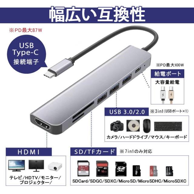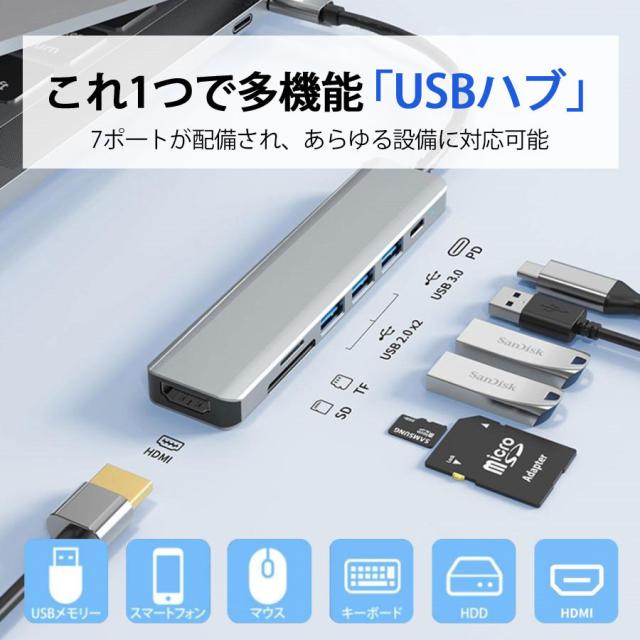 ドッキングステーション USBハブ PD急速充電 7in1 Type-C 7ポート USB3.0 変換アダプター HDMI出力 S