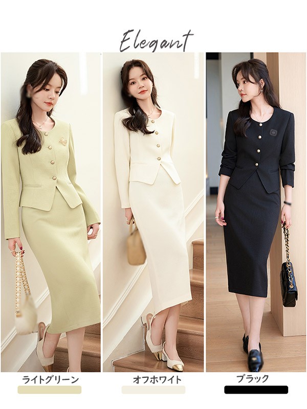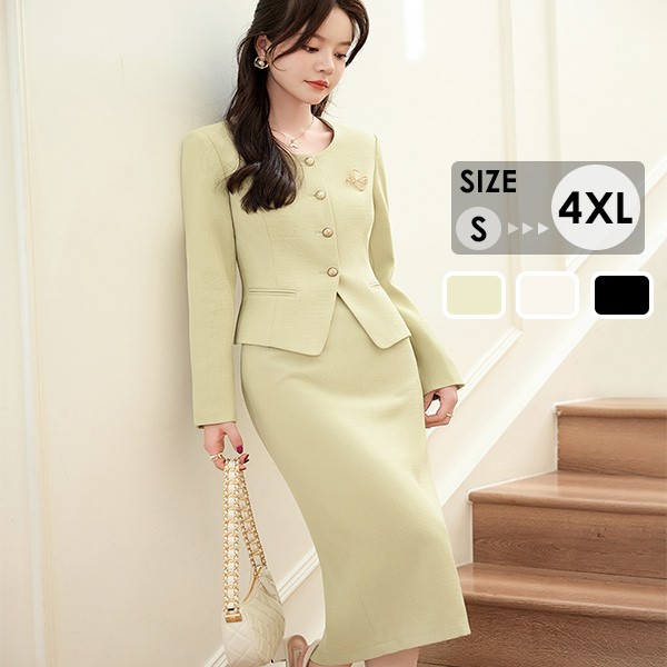 スーツ レディース ロング スカート 卒業式 卒園式 入学式 入園式 母 セットアップ フォーマル セレモニー ママスーツ ジャケット きれいめ 上品 オフィス OL ビジネススーツ 大きいサイズ 結婚式 S M L XL 2XL 3XL 4XL ライトグリーン オフホワイト ブラック 黒
