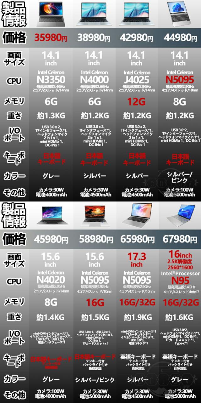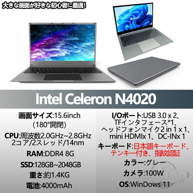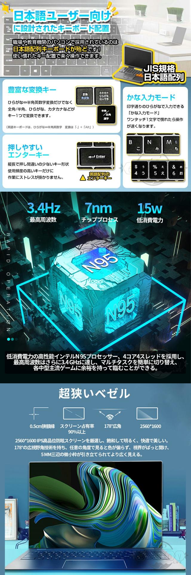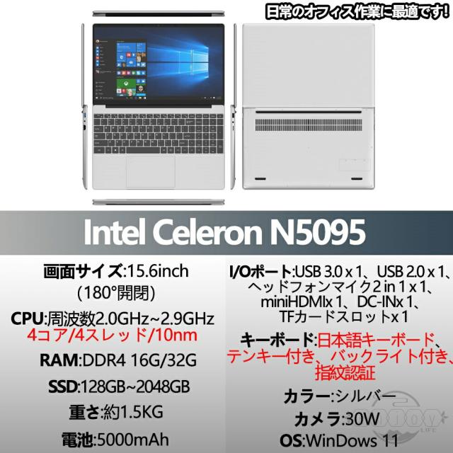 【強力でN5095プロセッサー】高性能CPUインテル celeron N5095-より強力で低消費電力のプロセッサーを搭載しています、標準周波数2.0 GHz 、最大周波数2.90 GHz搭載で非常にサクサク操作できます。