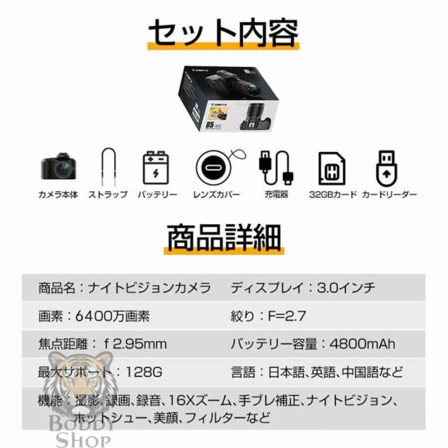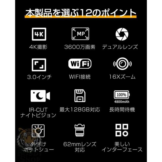 デジタルカメラ 4K 6400万画素 IRナイトビジョン 安い 小型 3インチ画面 カメラ ビデオカメラ 16倍ズーム 電子手ブレ補正 デジカメ WIFI 一眼レフカメラ 2026