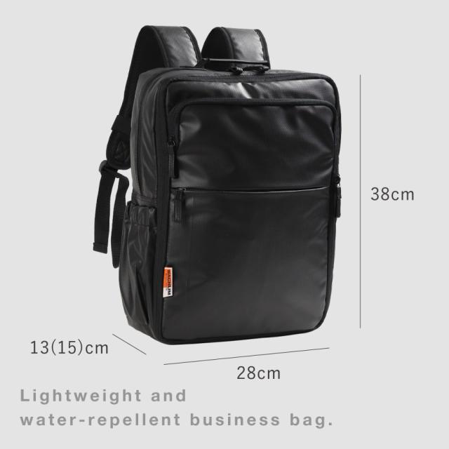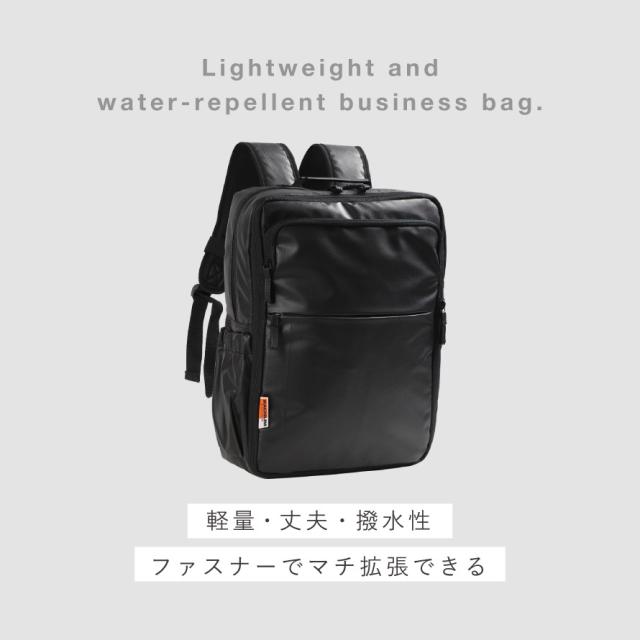 ビジネスバッグ リュック メンズ 大容量 軽量 出張 ビジネスリュック B4 タブレット キャリーオン マチ拡張 通勤 ビジネス 仕事 旅行 撥水 PVC マグナム PVCコートシリーズ 大開き マチW ビジネスバッグ