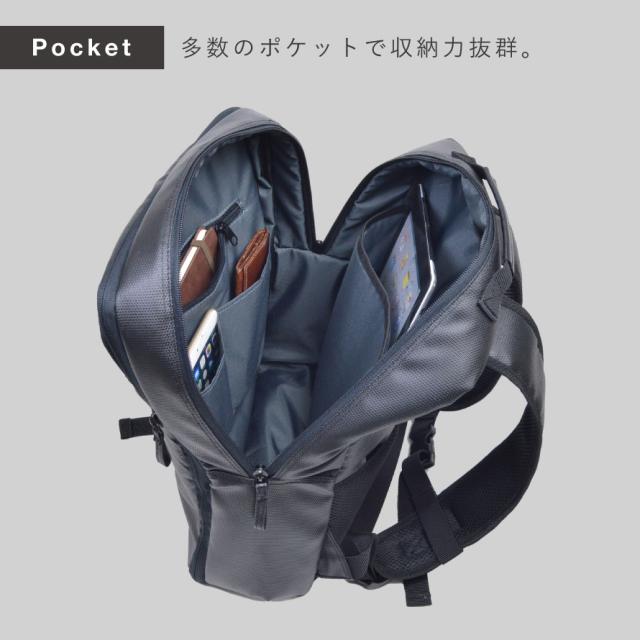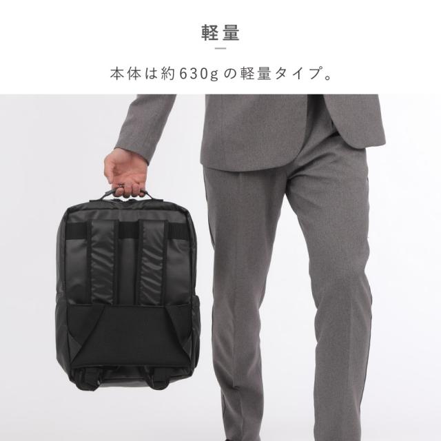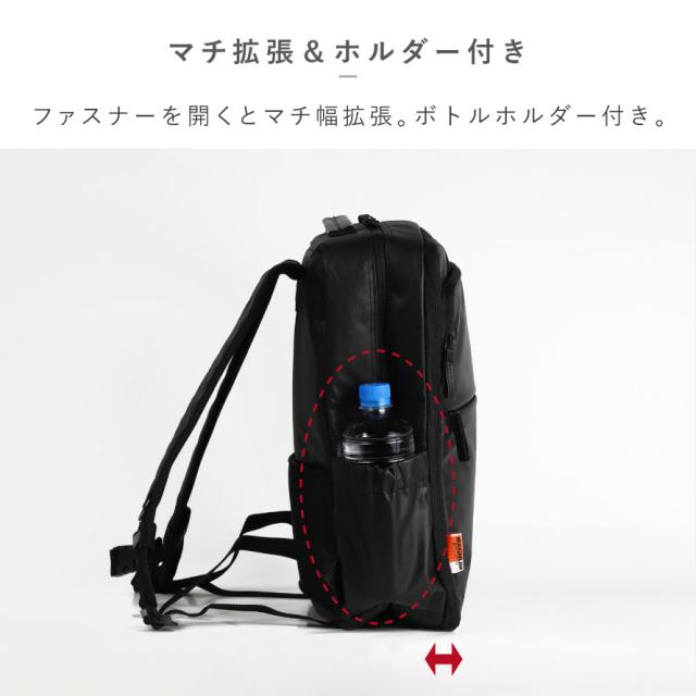 マチ拡張で大容量。通勤や通学、ジム通いにも使えるビジネスリュック。出先で荷物が増えた時にマチ幅を拡張可能。ファスナーを一周ぐるっと開くだけ。B4サイズも収納できる大容量サイズなのに、本体は約630gと軽量なところも◎。