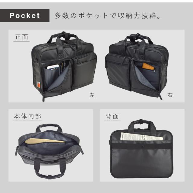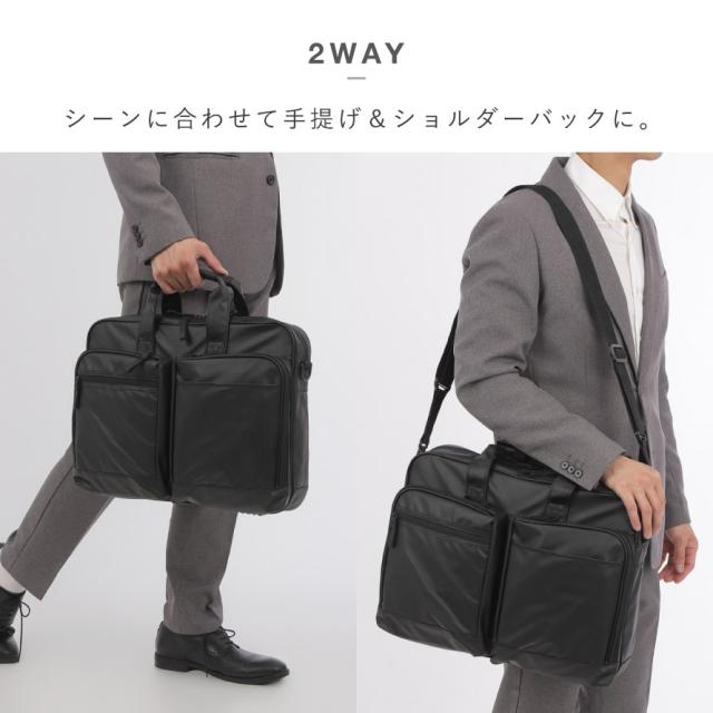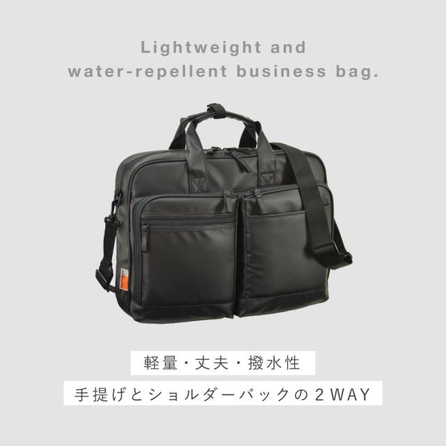 ビジネスバッグとしての機能を満載した、手提げとショルダーバックの2WAY仕様のバッグ。耐久性に優れた、丈夫な1680Dポリエステル生地を採用。さらにPVCコートによって撥水性がUP、