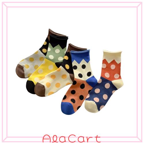 ◆商品名:[DAMILY] 靴下 レディース 秋冬 可愛い 綿 くつした 女性用 おしゃれ 締め付けず靴下 婦人 保温 ショートソックス ドット柄 5足セット 2