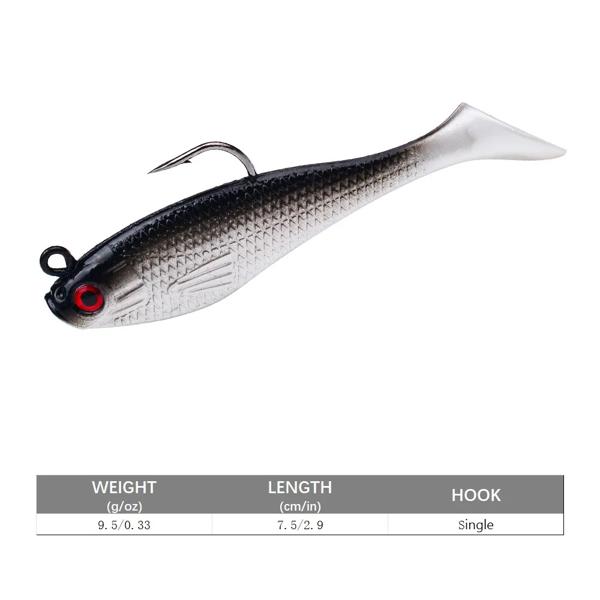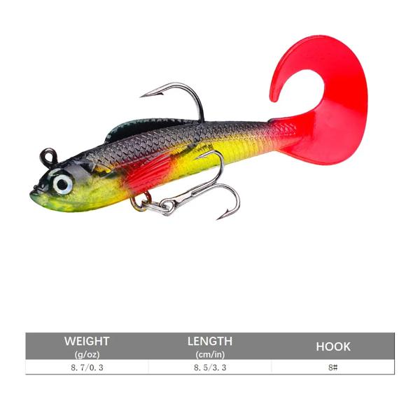 ソフトラバーフィッシングルアー,人工シンキングスイムベイト,カーリーテールジグの餌,ベースとパイクの道具,75mm, 85mm, 1ユニット