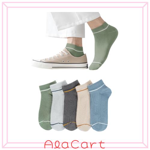 素材構成:70%コットン 季節:春夏秋冬 対象:男性 スタイル:ショートソックス サイズ:フリーサイズ 色: ブラック、ブルー、グリーン、グレー、ベジュー セット内容:5足 キャラクター: ?靴下 メンズ 25-27cm くるぶし、伸縮性、吸湿性、通気性が優れて、様々な場合やアウトドアなどに適用できます。 ?厚くも薄くもない素材に四季を当てはめ、柔らかな感触と柔らかさで両足を包み、快適・安心感を与えてくれるう靴下 メンズ おしゃれ。 ?一体化縫製デザインを採用し、踵と靴の摩擦を軽減し、弾力性優れた、足を優しく包み込んで、拘束感がなくなったショートソックスメンズです。