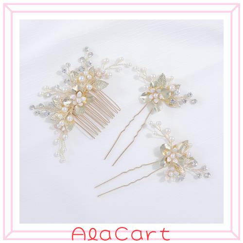 Haodeliy 髪飾り ヘアアクセサリー ヘッドドレス コーム Uピン ヘアピン 3点セット 花嫁 ヘアアクセサリー 手作り ウェディングヘッドド