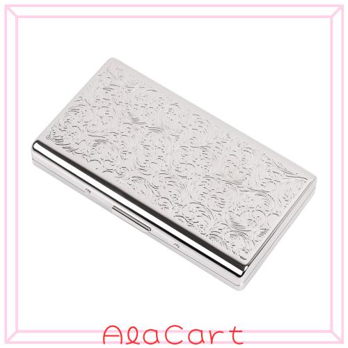 レトロメタルシガレットケース-14本の100mmシガレット用両面スプリングクリップオープンポケットホルダー、男性と女性用のクレジットカー